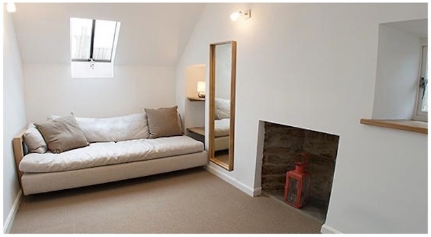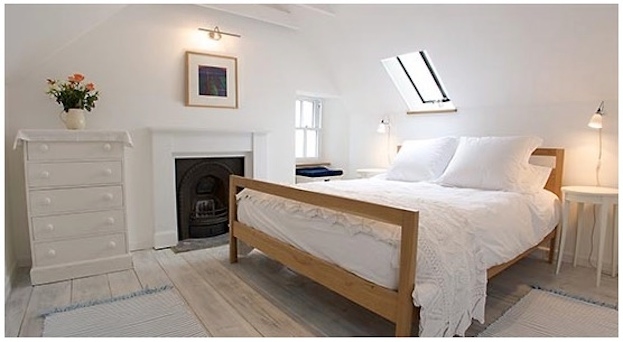 The open plan bedroom has a magnificent sea view seen from the comfortable king-size bed. The chaise sofa in the sitting-room is ideal for lounging in front of the multi fuel stove and you can while away hours listening to the waves lapping and watching the sea birds, boats, ferries, yachts, cruise ships and the occasional tall ship pass by. There is a quiet reading room with daybed on the first floor with a desk and broadband hub for Wi-Fi internet. This room can be converted to a second bedroom ideal for a small family.
