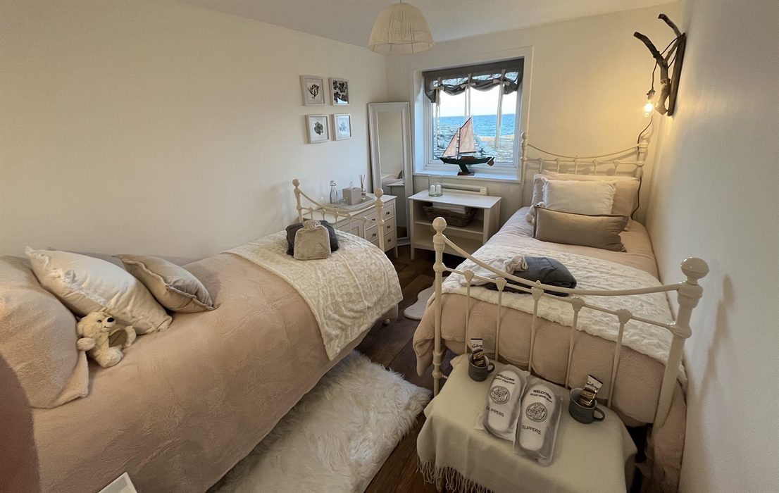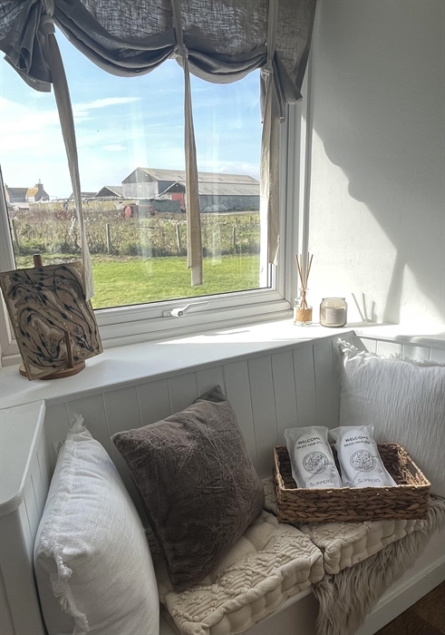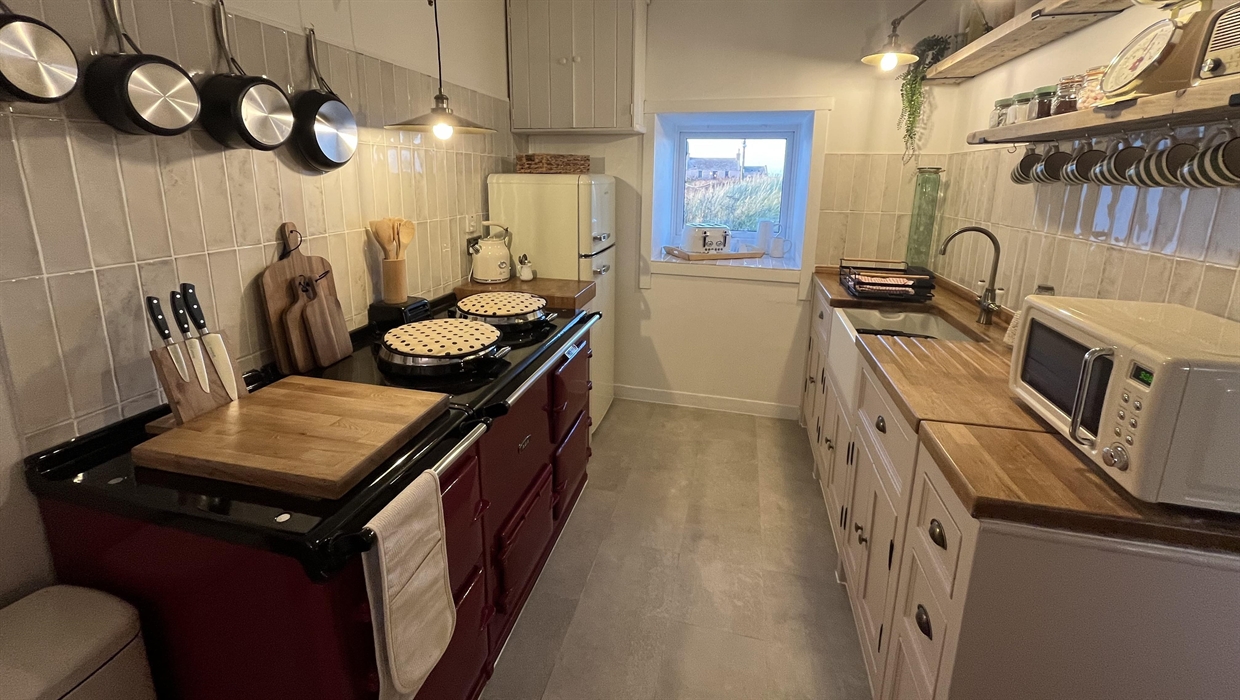 Kilnbarn Cottage, nestled between sweeping sandy bays sits with its toes in the sea.