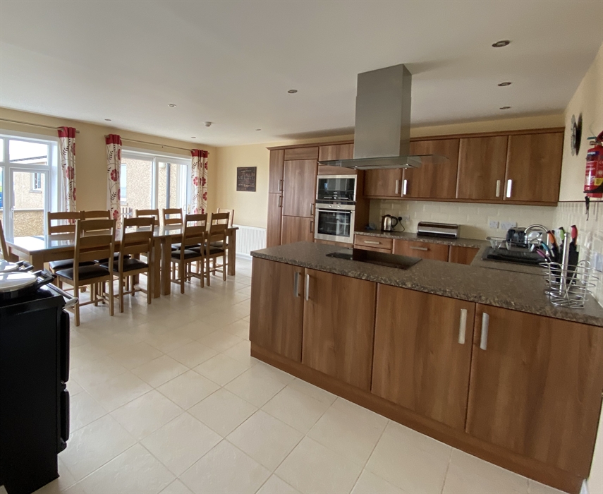 - Large kitchen, well equipped with modern appliances. Includes a large Stanley range oven, built-in fridge and freezer, dishwasher, microwave conventional oven, electric hob and oven, electric mixer and coffee maker. Also washing machine and tumble drier.