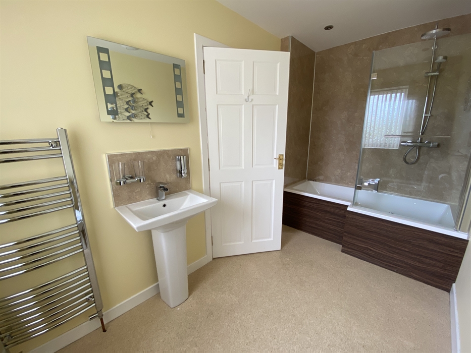 - The master bedroom is on the ground floor and has a large en-suite bathroom with shower over bath.