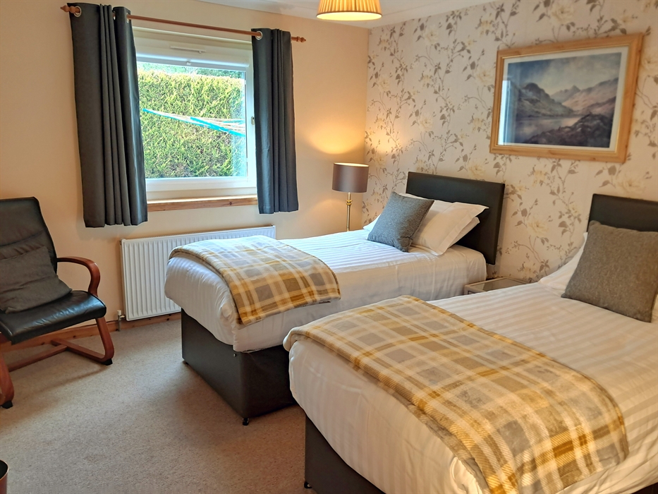 Situated in peaceful country, Ornum cottage has 1 double bedroom & 1 twin bedroom with option of extra pull out bed, cot available on request, wheelchair access shower. Strictly No Pets at this cottage .We now have an Electric car charging point for the use of our guests.