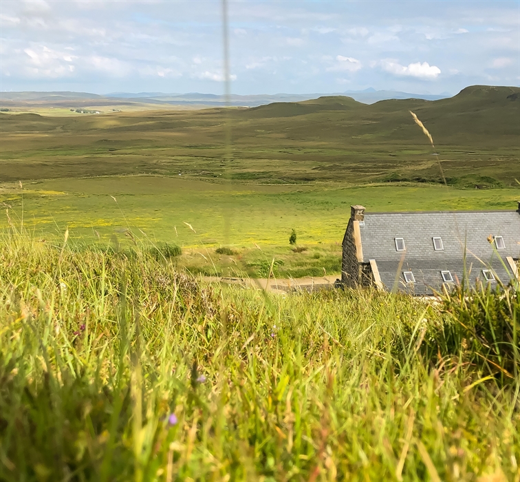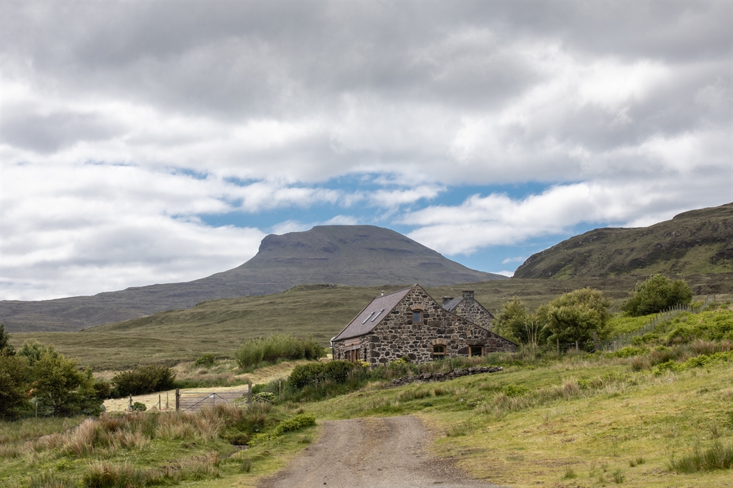 Most of the Isle of Skye comes with sensational views as standard but the panorama from our cottages has to be among the best on the island, tucked beneath the flat- topped Macleod’s Table, looking out towards the Cuillin and around to Loch Dunvegan. Reached by way of a farm track, Osdale is a special place offering peace and seclusion. Yet it's only a 10-minute drive to Dunvegan, with local shops good places to eat, and 10 minutes in the other direction gets you to the world-renowed Three Chimneys restaurant. We have two cottages here - the Farmhouse and the Byre that are rentable separately or together. Both accommodate up to four guests and three pets.