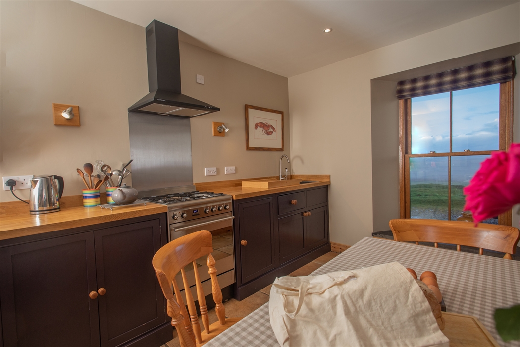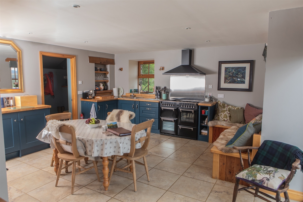 The Farmhouse is a traditional, stone-built cottage with two bedooms upstairs - a king and a twin. Downstairs there is an open-plan living area with a wood burner, an eat-in kitchen, family bathroom plus utility room with laundry facilities, and a boot room for coats, muddy boots and dogs.