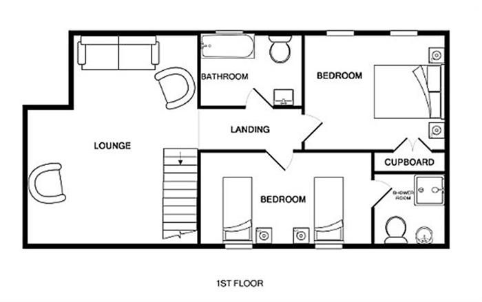 Accommodation for 10 over two floors: Ground floor: Hallway; spacious Dining room with sitting area; Kitchen; 3 Twin bedrooms (1 with en-suite shower); Accessible wet room with WC and shower; Utility room. First floor: Gallery Sitting room; Double bedroom; Twin bedroom with en-suite shower: Bathroom.