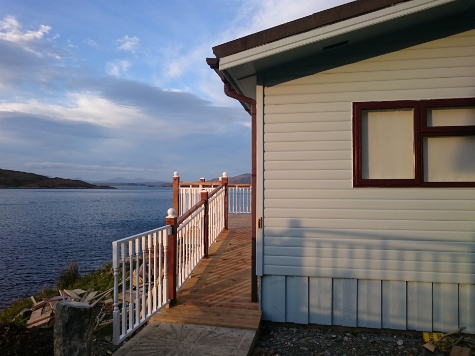 A timber lodge double glazed and heavily insulated. Althought they are close to the shoreline, with extensive views of the Inner Hebrides, they are sheltered from the open Atlantic by five lines of Islands.