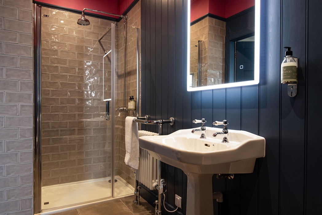 All the bath/shower rooms have powerful showers, heated mirrors, underfloor heating and Heritage fittings. Guests are provided with vegan Moo & Yoo hand wash, body wash and shampoo in each bathroom and a hairdryer is provided in each bedroom.