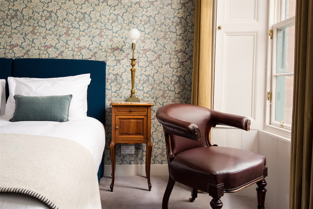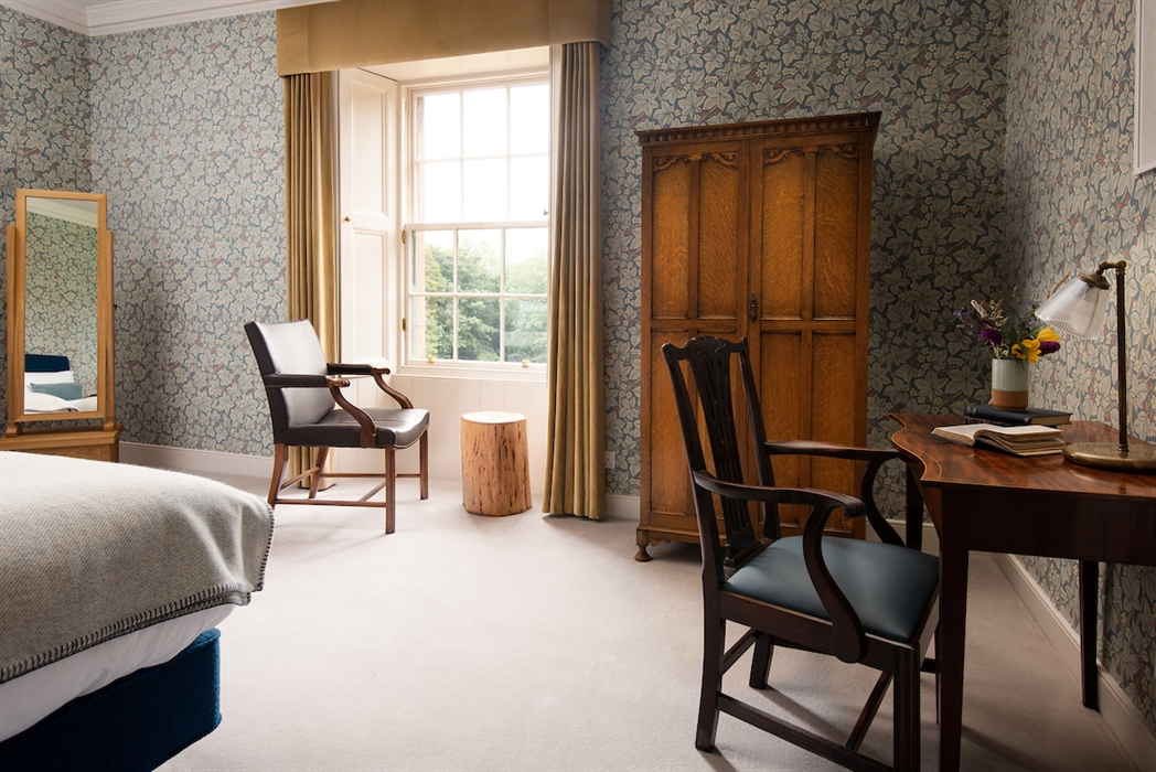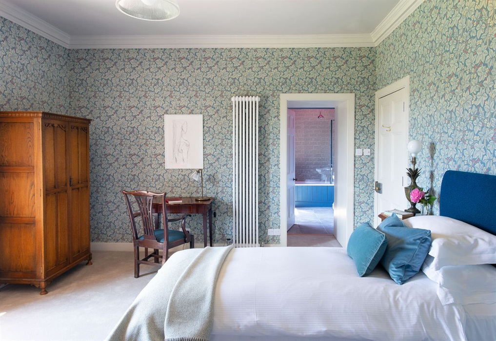 The bedrooms exude understated luxury with rich, natural fabrics and sumptuous Harrison Spinks’ beds dressed with hypoallergenic vegan down duvets and pillows from the Fine Bedding Company along with high-quality cotton bed linen and towels. The bath and shower rooms have powerful showers, heated mirrors, underfloor heating and Heritage or original fittings. Guests are provided with vegan Moo & Yoo guest amenities.