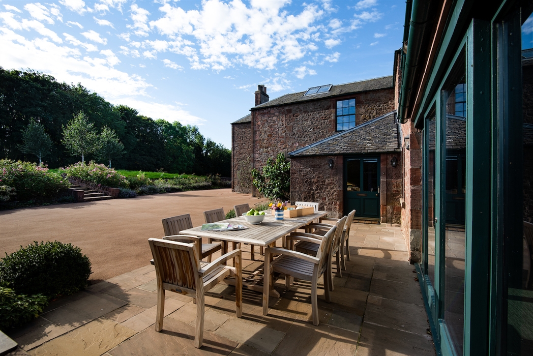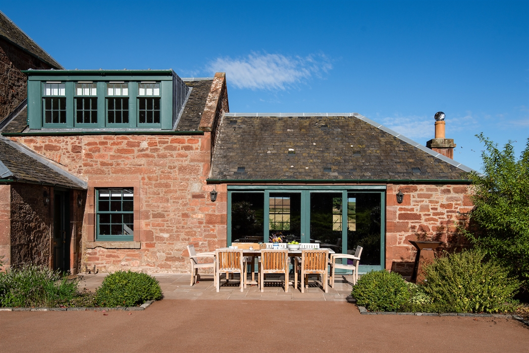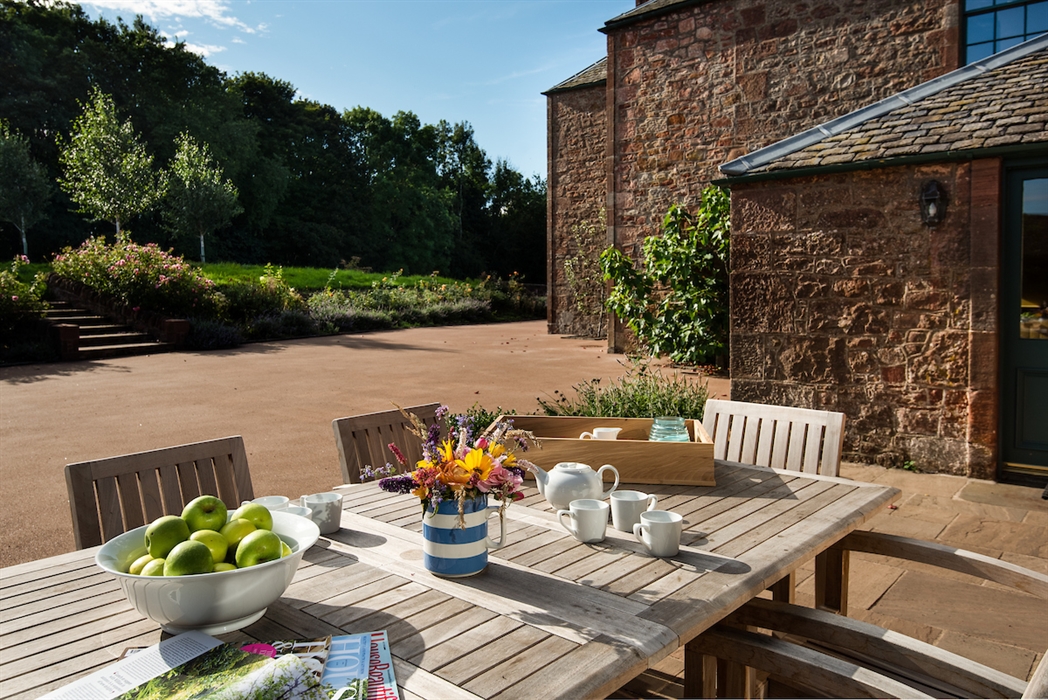 The Farmhouse sits to one side of the other three properties at Papple Steading – Grieve’s Cottage, Ploughman’s Bothy and Shepherd’s Bothy – and has its own large, private garden.