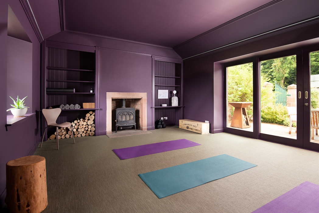 Garden room / Yoga Studio (yoga mats are provided) with log burner and sliding doors opening onto terrace.