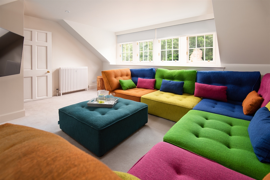 A second rear staircase leads only to the television room on the first floor with a large corner sofa and 50” Digital Smart TV.