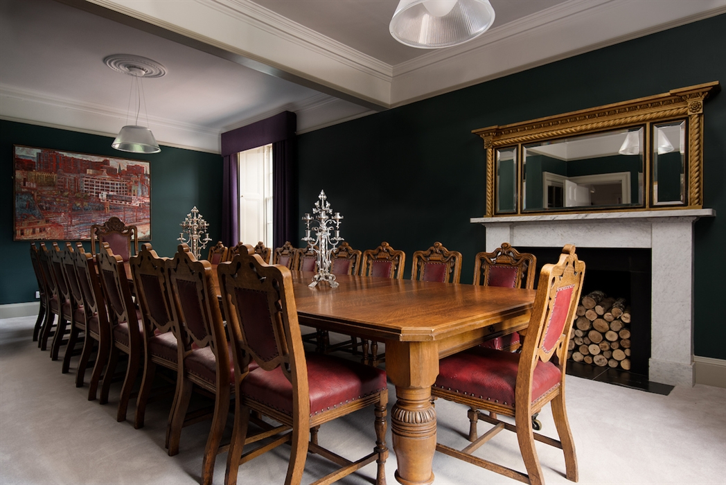 Dining room seating 22 guests with an impressive Edwardian dining table.