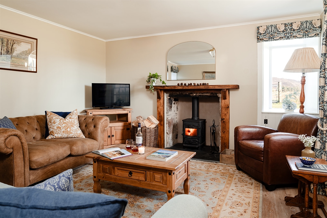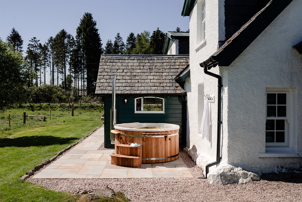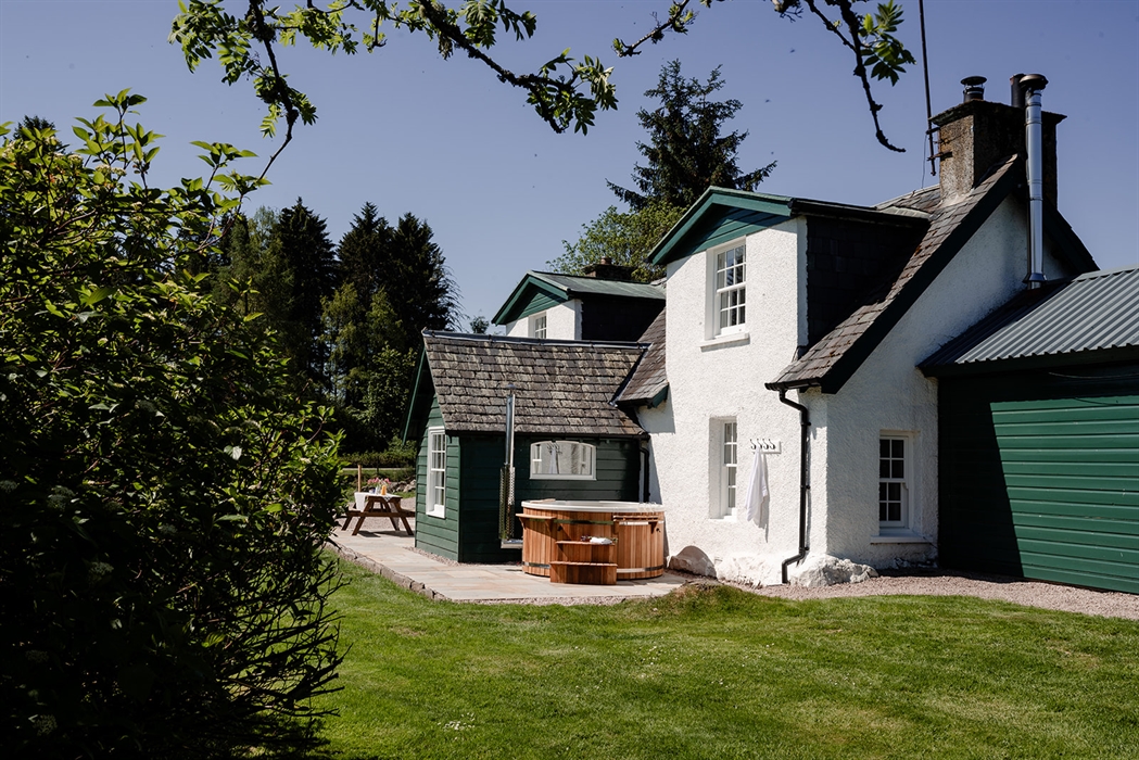 Park Cottage on Alvie Estate offers stunning Cairngorm views, 3-bedrooms, a wood burner, a wood-fired hot tub, and an enclosed garden. Recently renovated, it blends traditional charm with modern comforts, just minutes from nearby Aviemore.