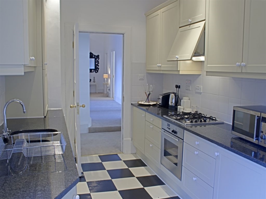This impressive second floor apartment is a perfect base from which to explore this beautiful city of Edinburgh, whether for business or pleasure. This is a lovely apartment which is furnished to a luxurious standard by a leading interior designer. It is within walking distance to all of Edinburgh's attractions, including Edinburgh Castle and Holyrood House. It is also a 10-15 minute walk to Harvey Nichols.