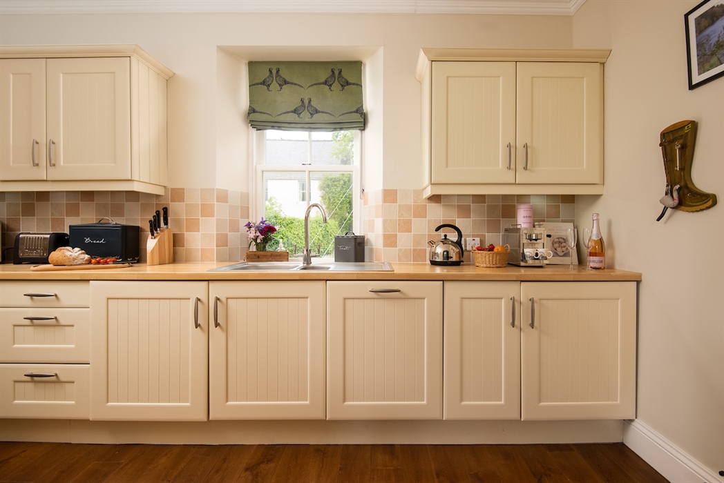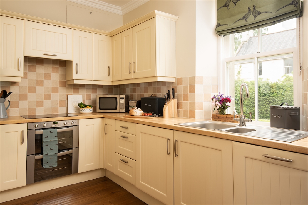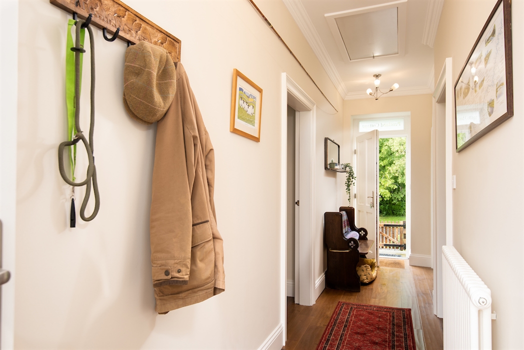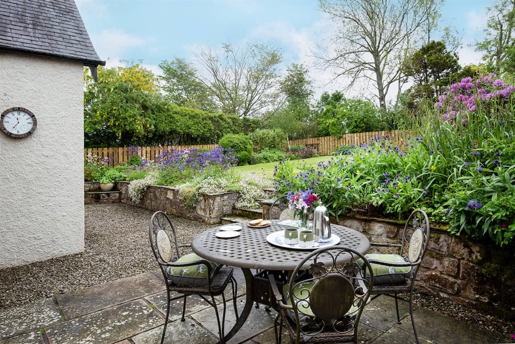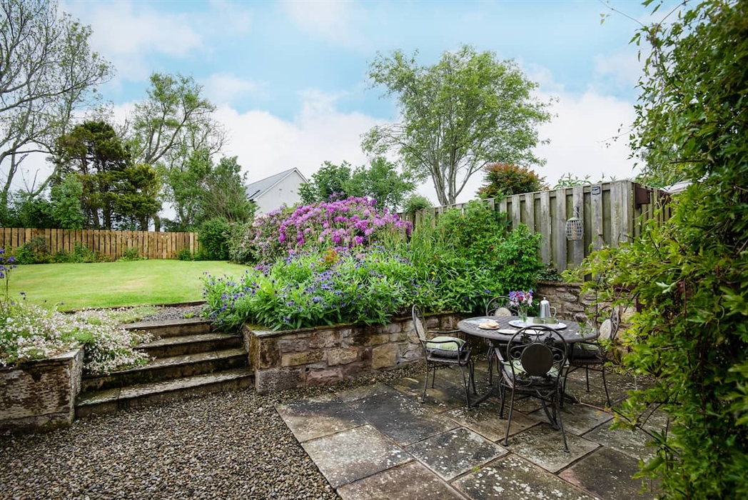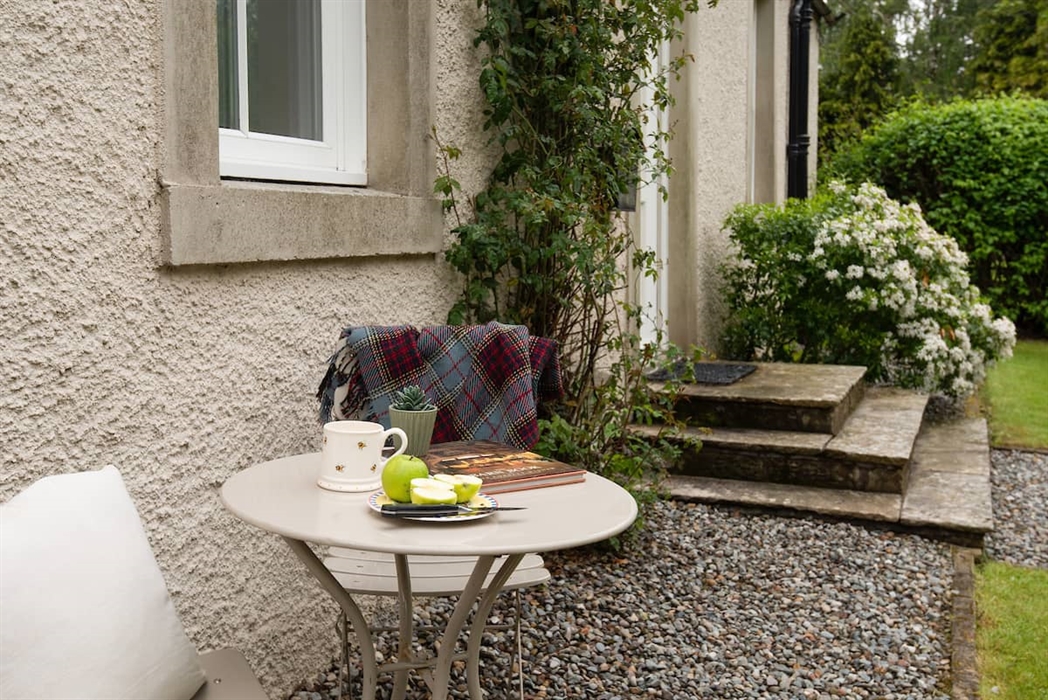 As well as a small front garden, Pentland Cottage boasts a larger lawn flanked by colourful, extremely attractive herbaceous borders. There is a bird feeder and nesting boxes to entice birds and other wildlife, and guests are encouraged to top up the feeder during their stay. A dining table allows for guests to dine outside too. Anglers will also find rod racks (the owner is a keen angler), and a secure outside shed can shelter bikes or golf clubs.