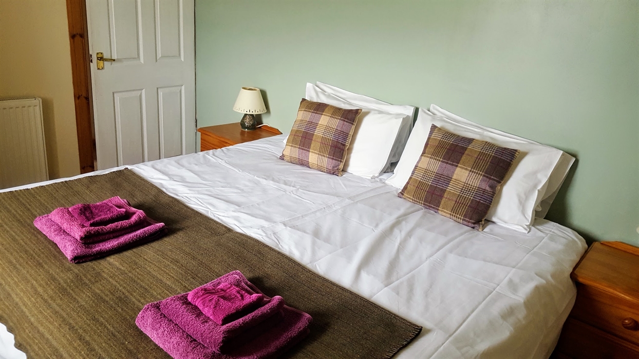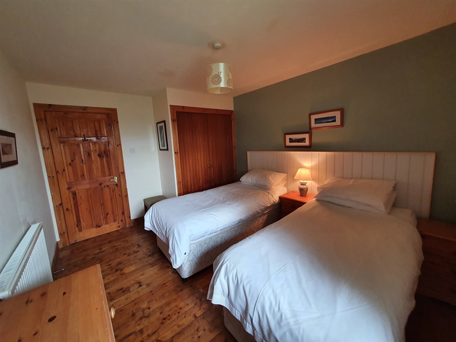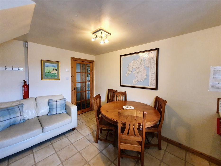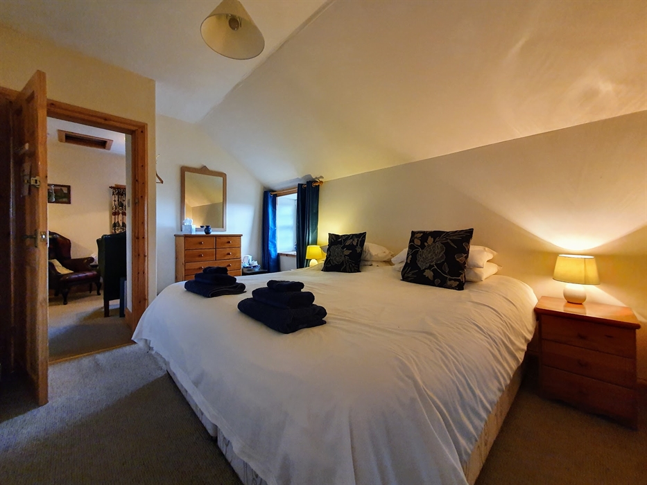 The farmhouse bed and breakfast suite can accommodate lone travellers or parties of up to four people. The rooms offer the luxury of super kingsize double beds for couples, or can be split to offer two single beds in each. Each room has ensuite shower and toilet facilities.There is also a small sitting room with TV, referred to as the 'whisky snug'. With four leather winged back armchairs, it is the perfect place to sit and enjoy a dram, after a day spent out on the hills or exploring the huge sandy beaches of Islay.
