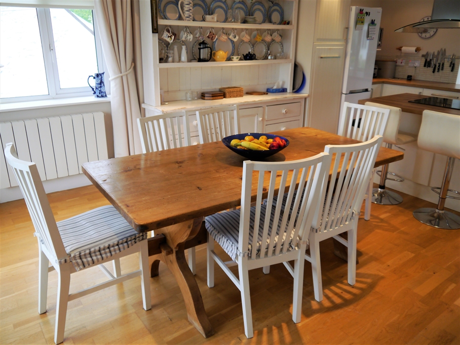 Services: Oil-fired central heating included * Bed linen and towels provided * Induction hob with electric oven * Microwave * Dishwasher * Washing machine * Fridge * Freezer * TV's with DVD Player in both upstairs and downstairs sitting rooms (both with BT TV package) * Bluetooth speakers * Wifi * Car parking area * Bicycle storage (4 x 6 foot lockable shed for bikes and wet gear) * 2 dogs welcome