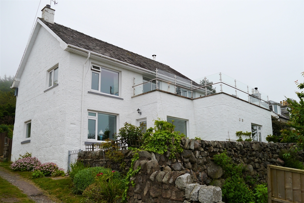 The house has a fabulous balcony with views over the Estuary to the surrounding hills and makes a perfect location for a family holiday in comfortable and beautifully prepared accommodation. There are gates to the property providing parking for up to 3 vehicles. The large garden area surrounds the property giving lots of outdoor space, leading up to the charming summerhouse.
