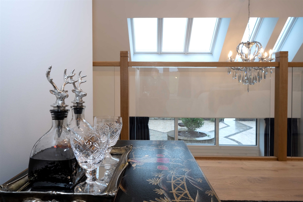 Due to the large feature and skylight windows light floods into Pigeon Cottage during the long days of our Scottish summers. Guests should be aware that whilst there are curtains in the downstairs area for privacy, it is impossible to completely block out light to the mezzanine bedroom.