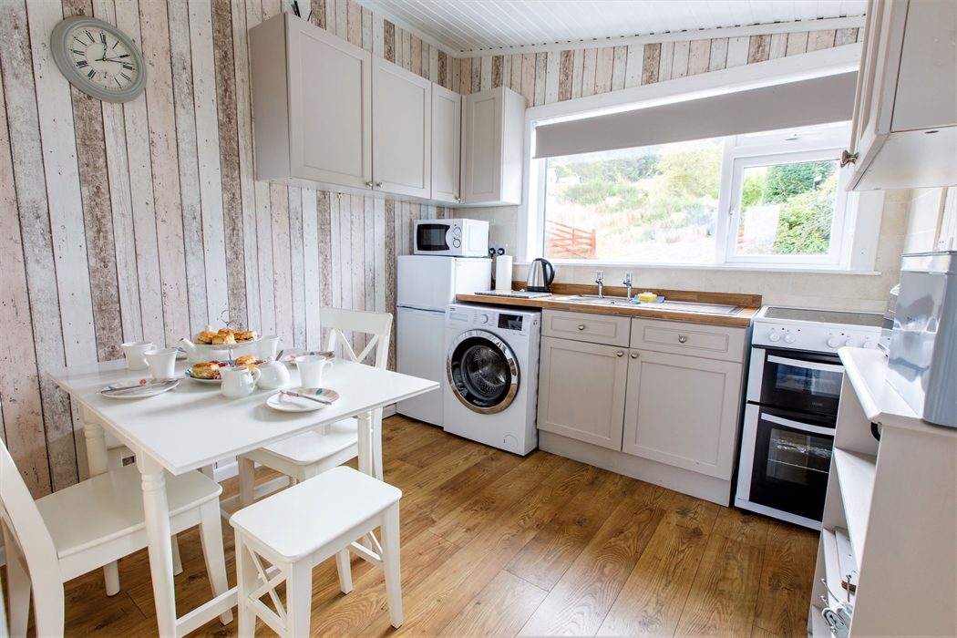 - Fully equipped kitchen with dining table,hob,oven,microwave,toaster and fridge/freezer.All crockery,cutlery and cooking utensils.Washing machine.