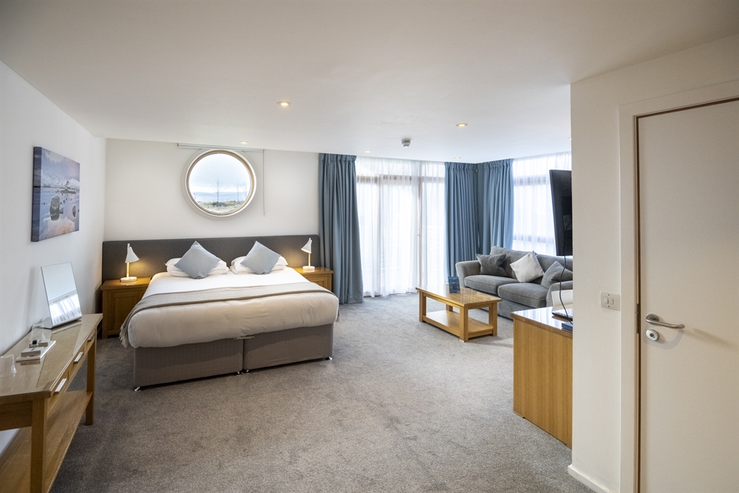 The Lodge Superior Rooms are spacious and light-filled, offering flexible accommodation for 2-4 guests. They all have ensuite facilities, should you wish a bath please do specify on booking. Features include a personal balcony, king-sized bed, a comfortable sofa bed, mini fridge tea and coffee-making facilities and a flatscreen TV. Views are either of Loch Fyne or Glenan Forest.