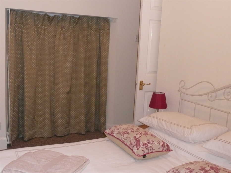 A romantic 1 bedroom apartment on the 2nd floor. The bedroom has a lovely King-sized cream wrought iron bed which is prepared for your arrival in crisp white sheets. The new bathroom is next door with an electric shower over bath and towels are provided. Hairdryer. The sitting room has a double sofa bed so 4 people can stay if required. Digital TV with DVD player. A dining table overlooks the courtyard and a new kitchen leads off with fridge, electric hob and oven and washing machine. Meter parking on the street, 24hr NCP parking 2 mins walk away. Sitting Room