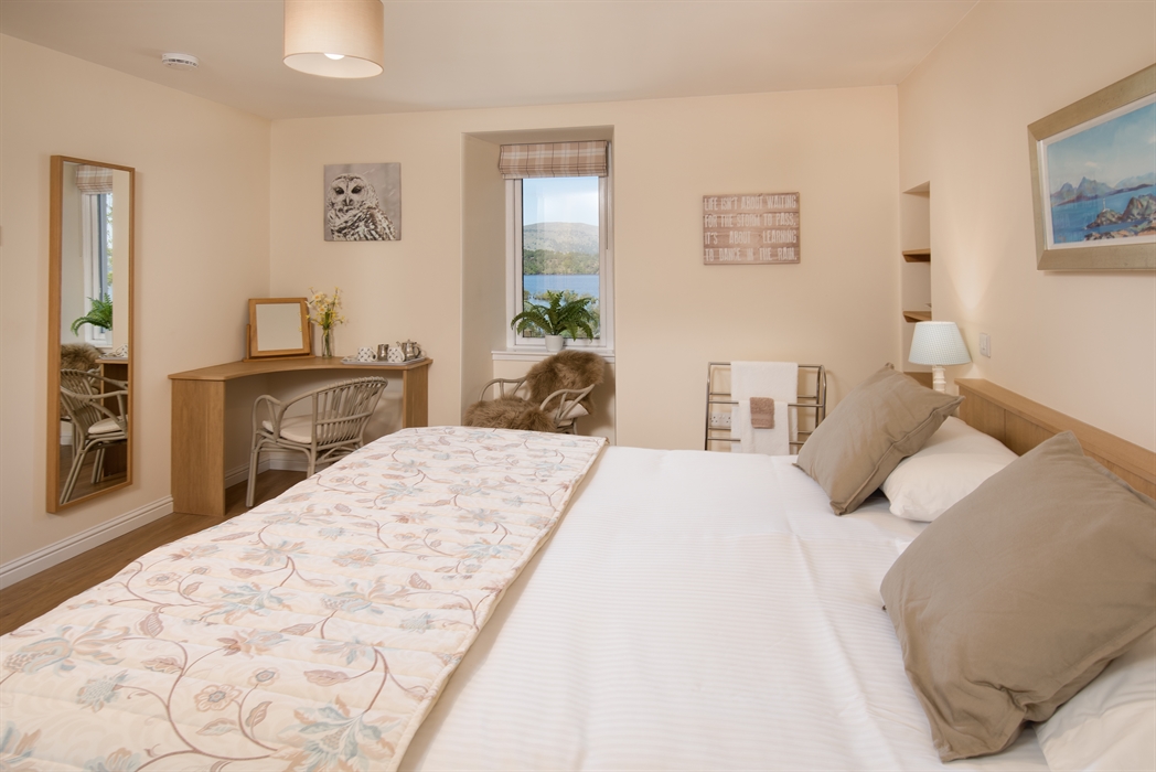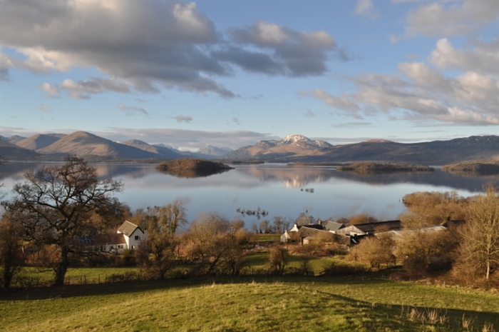 Set within 230 acres of private farmland, the house occupies a magnificent location overlooking one of Scotland’s most iconic freshwater lochs. Extensively renovated to an exceptionally high standard in 2014 the Old Farmhouse offers luxury accommodation for those who seek the finest in self-catering. Almost every room in the house commands the same mesmerising view and the decked area at the front offers an uninterrupted panoramic view over the largest loch in Britain, its islands and the Scottish Highlands. The house has a lovely light kitchen with a ranger cooker, a comfortable living room with wood-burning stove, 3 flexible bedrooms that can be made up as superking double or twin rooms all with spectacular views, a level access shower room and a bathroom with spa bath and second shower. Just below the house is a private pier for guest wishing to bring their own boat or charter a speedboat for a tour of the loch.