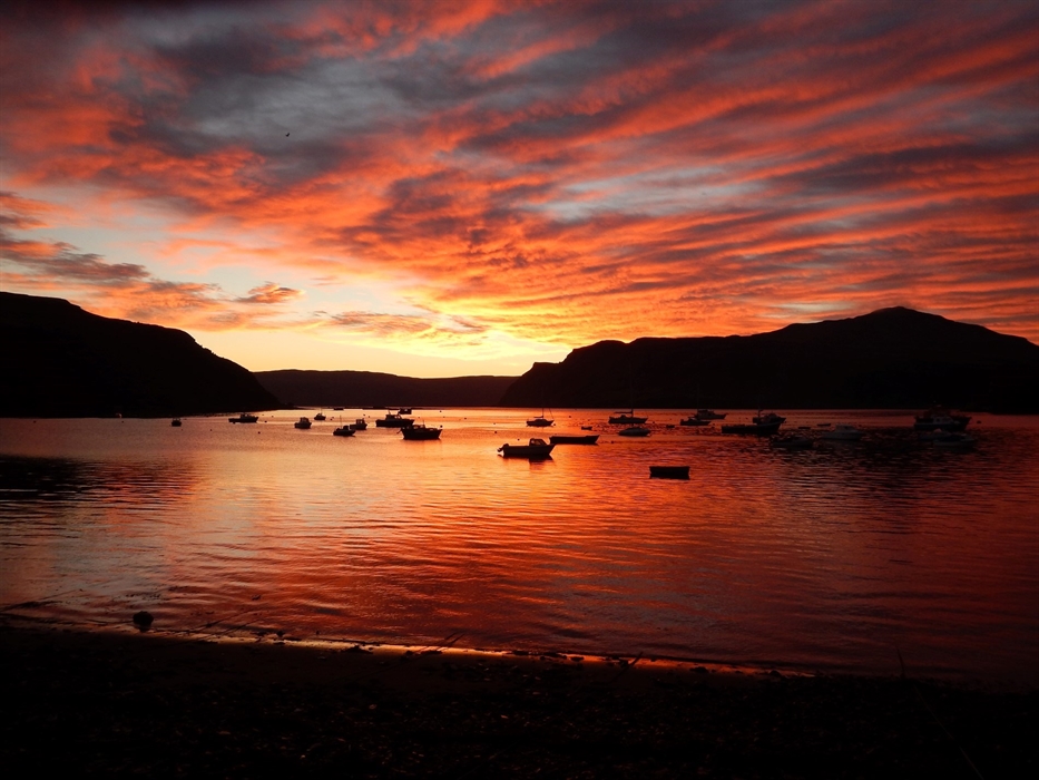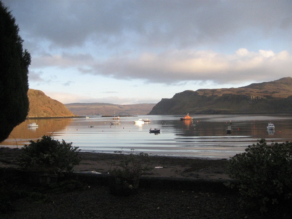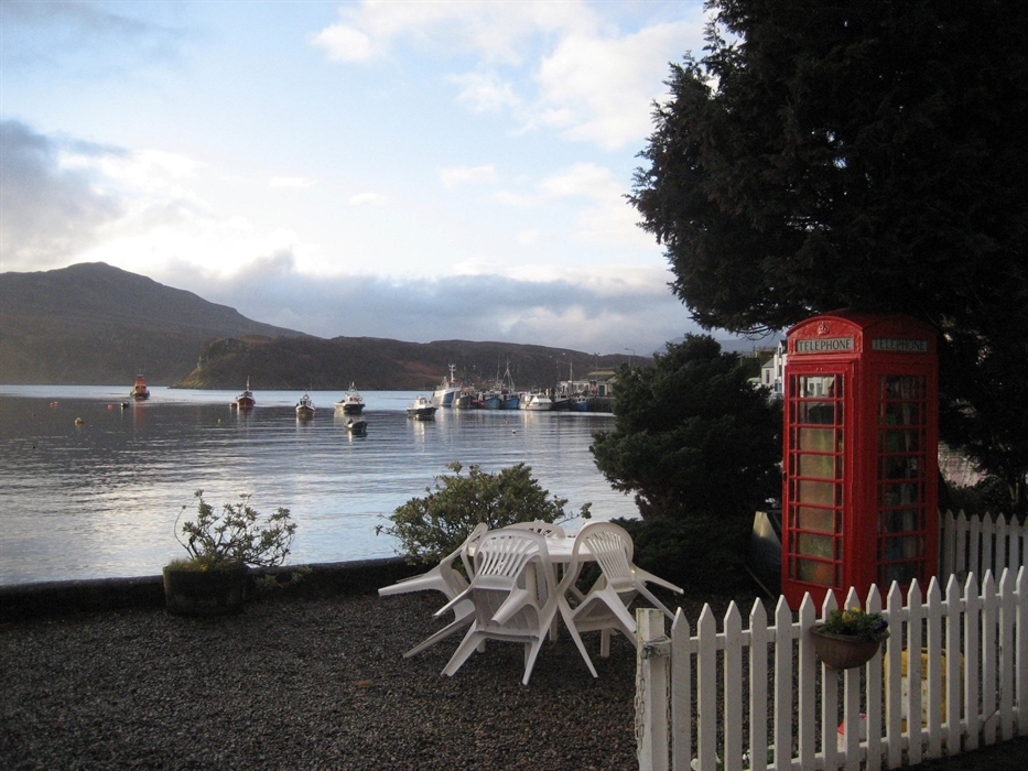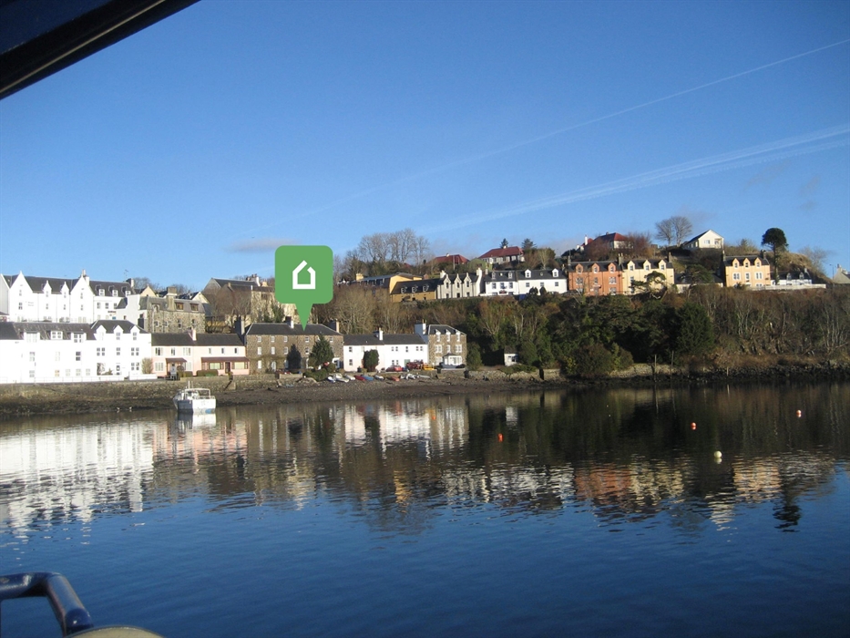 The house is a beautifully preserved listed three storey stone house set in the iconic location with panoramic views over the bay Raasay and the Cullins. Beachfront garden with Private access to the beach. The telephone box in the garden is the most photographed in Scotland. Set in a peaceful central location within the picturesque coastal town of Portree on the mystical Isle of Skye. Stroll along to the Pier to watch the fishing boats unload and buy your fresh crabs and prawns directly from the boats and shop. Fish from the end of the Pier great for older children. The town has quirky shops friendly pubs and a variety of restaurants from Michelin Guide to Fish & Chips. Walking climbing horse riding golf and kayaking are all available close by with the magnificent Quiraing Neist point The Old Man of Storr and Cuillin range to explore. Take a local Sea life boat trip to enjoy the spectacular scenery in this Area of Outstanding Natural Beauty . The accommodation offers THREE bedrooms on the First floor: 1 double with en-suite bath and WC and 1 double with custom made vanity wash basin. On the second floor 1 twin and Shower room: with shower and WC. Ground Floor Spacious Lounge: with TV/DVD. Kitchen/diner: with Aga microwave fridge/freezer and dishwasher. Utility/study area: washing machine tumble dryer fridge and seating area. Outside: front garden onto the beach with seating area. Amenities: off-road parking for 2 cars. Bed linen towels electric central heating and Wi-Fi included. Regret no smoking. Regret no pets. Additional info: 100 deposit required payable direct to the owner. Location: beach shops restaurants and pubs within walking distance. Arrival: 4pm.