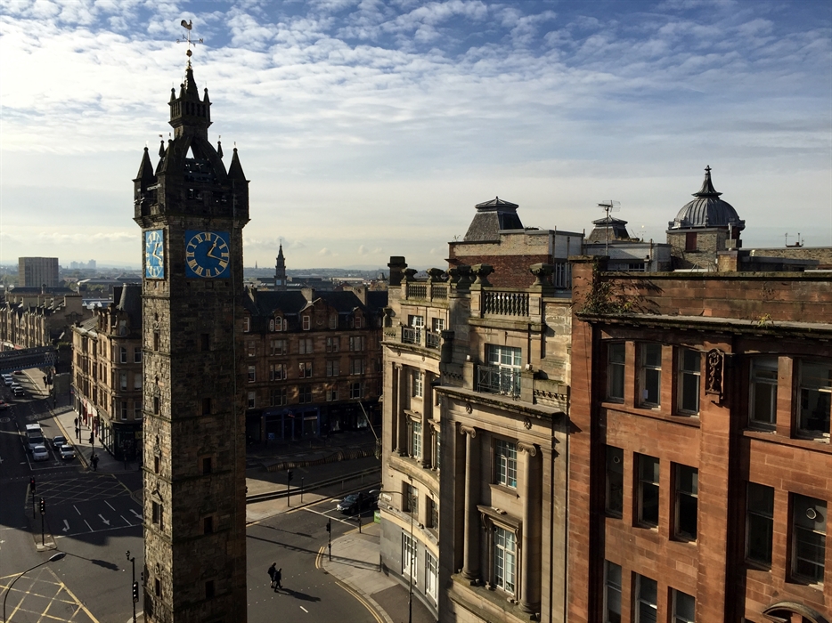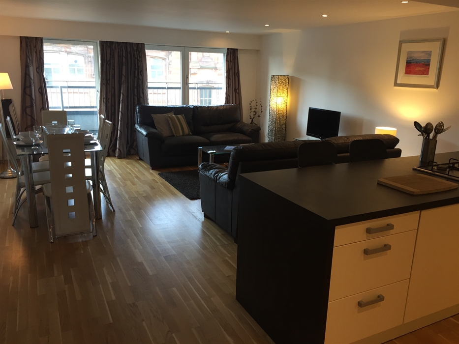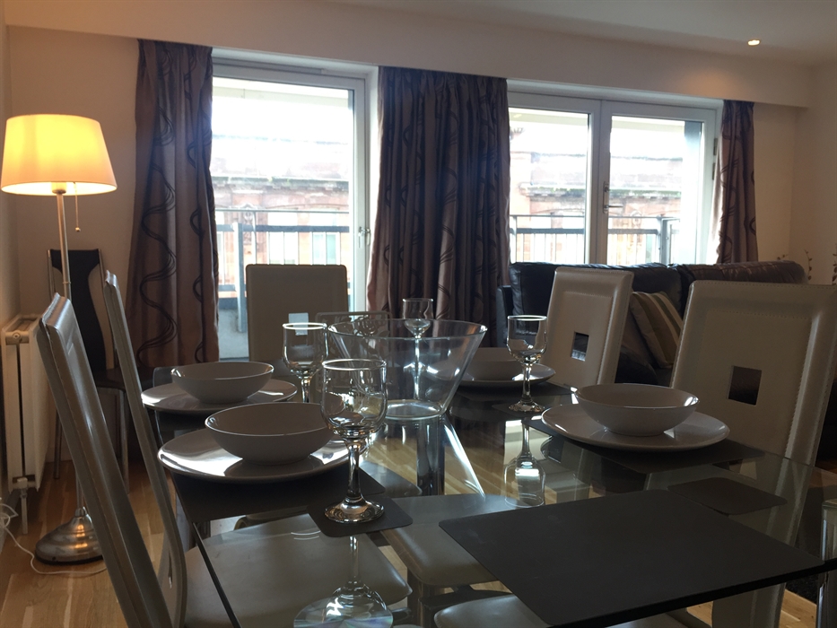 Luxury Serviced Apartments in Tolbooth Merchant City Glasgow, centrally located on the edge of the vibrant Merchant City in a modern building adjacent to the historic Tolbooth Steeple at Glasgow Cross. Free Wifi and Private parking (available on request)