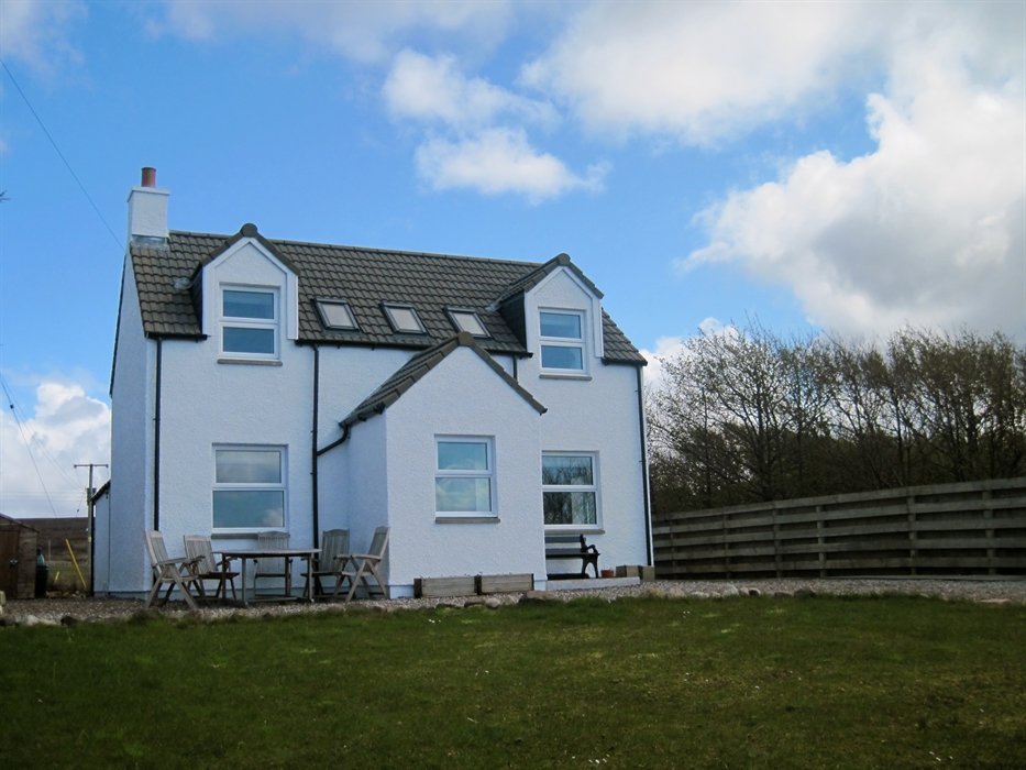 Cars can be driven straight to the front door and at the front of the house there is parking for up to 3 cars. There is a large table and chairs in the front garden looking out over the sea to the Summer Isles.