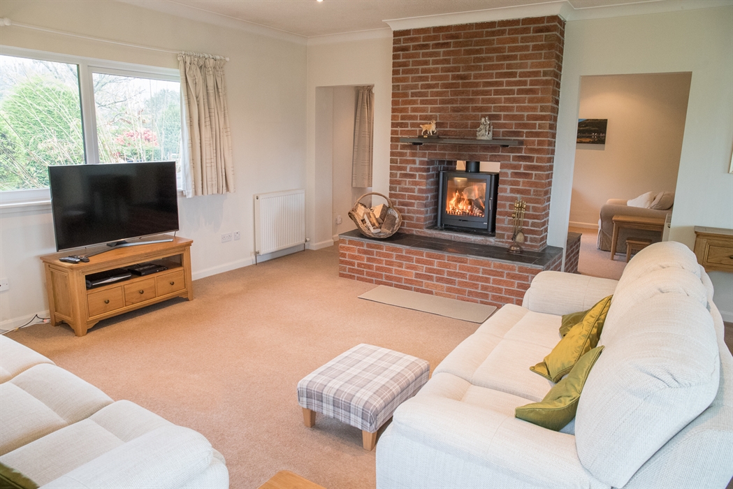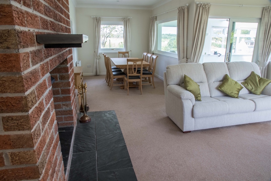 * There is a huge lounge as the main living room, with additional comfortable seating in a separate snug room, separated from the main living room by a double wood burning stove - logs and firelighters provided! There is an open plan dining area with an oak table seating eight, adjacent to the sun room with beautiful sea and mountain views.