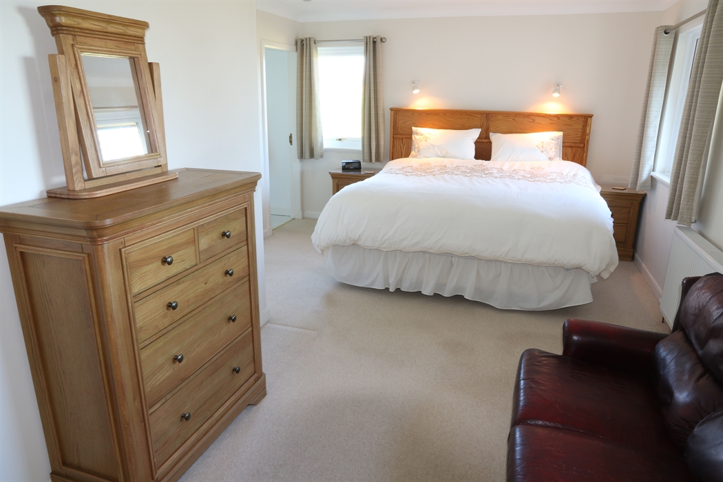 * There is a spacious king size bedroom with a Chesterfield sofa and ample storage, overlooking the garden.