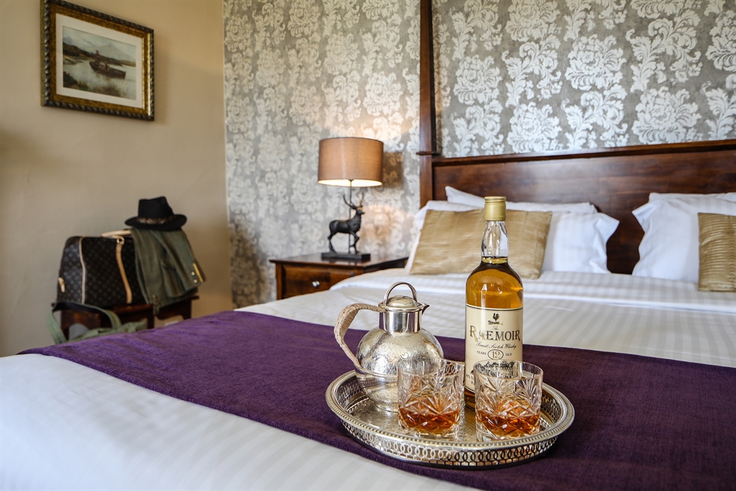 Guests will have at their disposal the 18 individually decorated ensuite bedrooms which allow all the comfort and relaxation expected of such a grand House, each with its own service items. Other rooms include the impressive original Oval Ballroom, beautiful wood panelled Drawing Room, exquisite Garden Room, grand Georgian Room and unique Big Fish Bar and for larger events Raemoir has a Marquee space connected to the house to provide either weatherproof access to the house our directly to the front lawns and grounds.