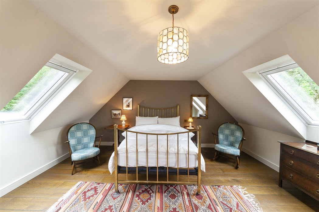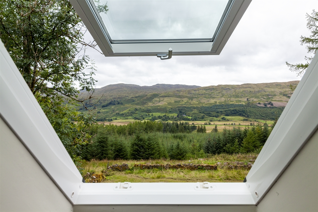 Upstairs there are two double bedrooms with traditional brass beds (and an additional double Z-bed), and a bathroom with cast iron roll top bath and separate walk-in shower. There is a further shower room and utility room downstairs. All rooms have wonderful views of the Glen and surrounding forest.