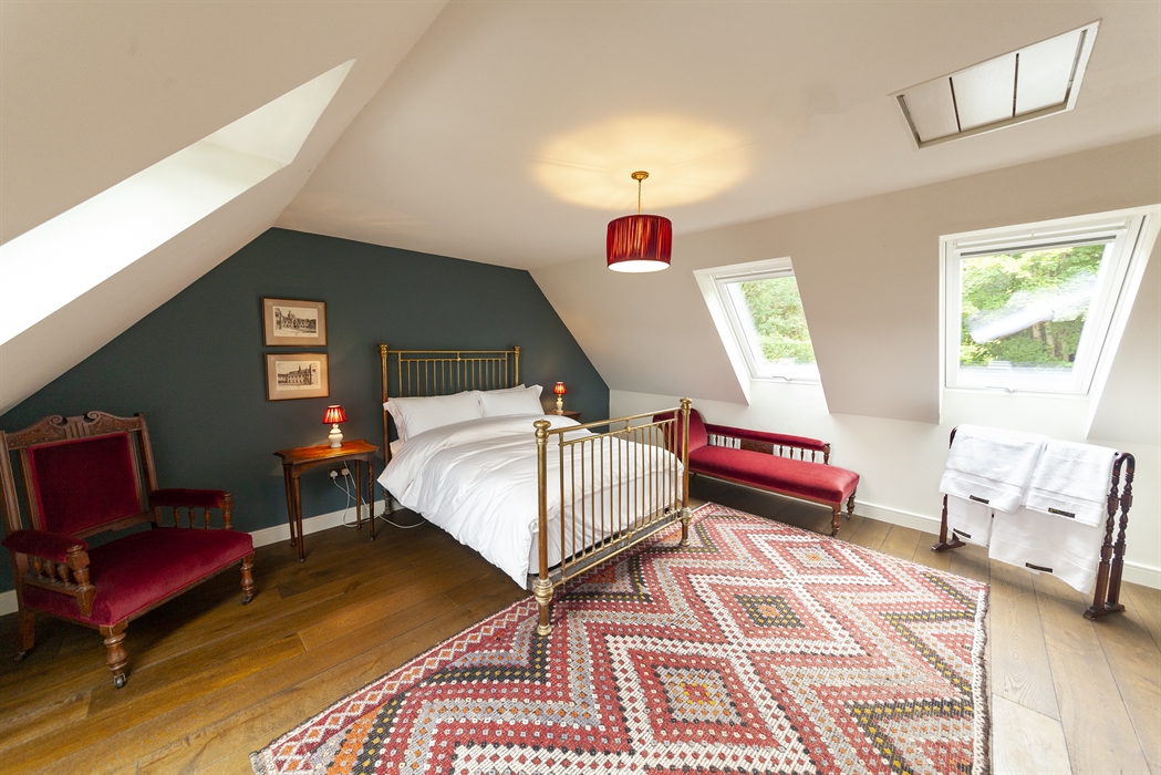 The ground floor is open plan. A double height entrance hallway and staircase provides light and space and leads to a large living room, kitchen and dining area - all with access to the outdoor decking. New high quality furnishings sit alongside interesting antique pieces that recall the property’s Victorian and Edwardian past. Framed photographs tell the story. An enormous open log fire complements underfloor heating. Double glazed sash and case windows combine with internal wooden shutters and reclaimed wooden floors to ensure a comfortable and cosy stay.