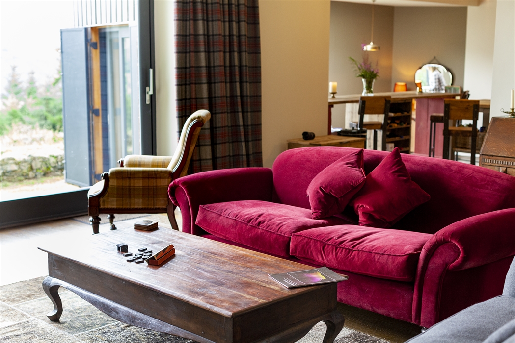 A separate detached bothy - chill area, kitchenette and separate bathroom together with a sleeping area on a mezzanine level - sleeps 2-3 and is ideal for teenagers.