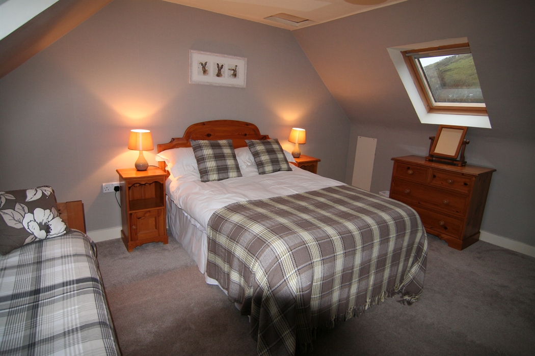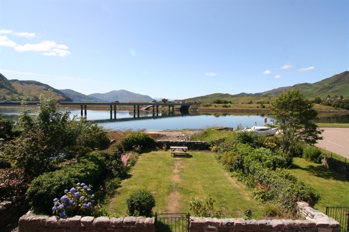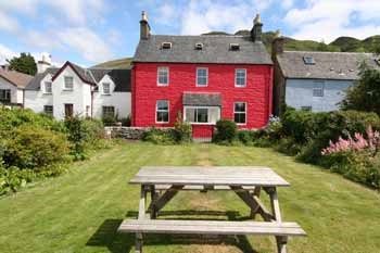 A large, beautifully decorated holiday house on the shores of Loch Long and within 5 minutes’ stroll of Eilean Donan Castle. There are stunning views across to Skye and the Cuillin Range from the front garden and from most of the bedrooms. The top quality accommodation sleeps 12 in 6 bedrooms (3 king-sized doubles, a twin-bedded room, a single room and a family room sleeping up to 4 people). It’s ideal for groups of friends or family get-togethers with its large richly furnished dining room, perfect for dinner parties. The front garden overlooks the loch and is a perfect spot to enjoy the sunset, and look out for the resident heron on the loch, the occasional passing seal and even otters playing and feeding in the kelp by the shore. The large, private rear garden boasts a wooden deck with seating and tables for 12 people, perfect for barbecues and alfresco dining. The house is in the delightful Highland village of Dornie, where three lochs meet, Loch Long, Loch Alsh and Loch Duich and home to the world famous Eilean Donan Castle. Kyle of Lochalsh and the Skye bridge are just 9 miles away, and it’s a scenic 11 mile drive to picturesque Plockton. We are ideally placed for walking and climbing, with the Glenshiel Ridge, the Five Sisters of Kintail and the Cuillin Range on Skye all within easy reach. Those who prefer gentler walks have the choice of Highland glens, woodland walks and rambles along the loch. A wealth of other activities are right on your doorstep such as fishing, kayaking, horse riding and mountain biking, all among breathtaking scenery. Red House Dornie is available for weekly lets, from Saturday to Saturday. And during the winter months we also offer shorter breaks of 3 or 4 days. We welcome children and provide extra facilities such as a full-size wooden cot, high chair and stair gates. Well-behaved pets are also welcome. Please note there is strictly no smoking at the house.