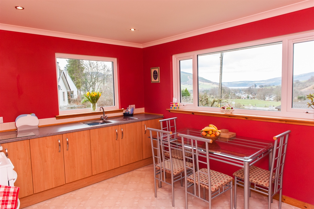 The cosy lounge features a log fire and the picture window looks out on to a panoramic view of the surrounding hillside. After a busy day sightseeing, you can relax and either enjoy the tranquillity of the location, listen to a CD, watch your favourite TV programme or, if you prefer, choose from the selection of DVD's available. The large modern kitchen and utility room provide a wide range of modern amenities to ensure your stay is as comfortable and convenient as possible.