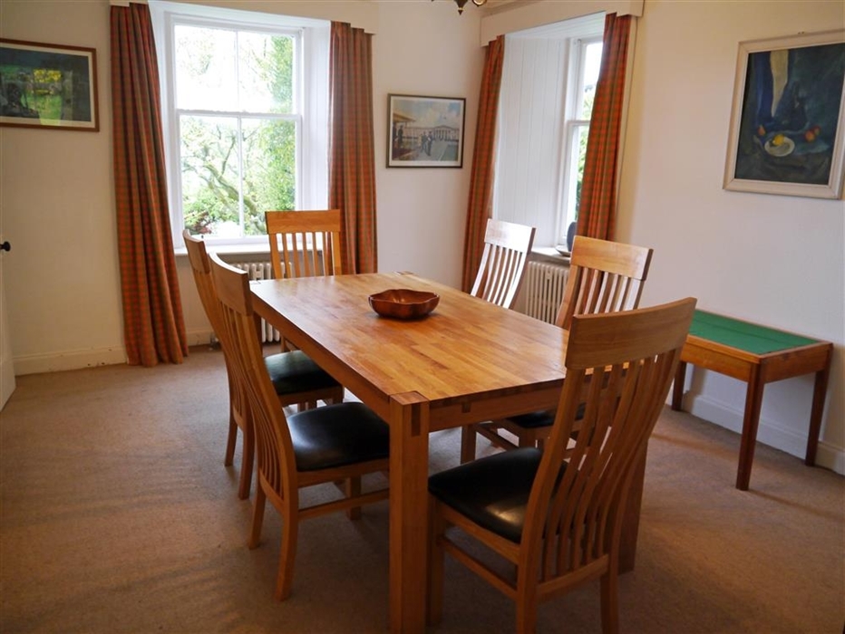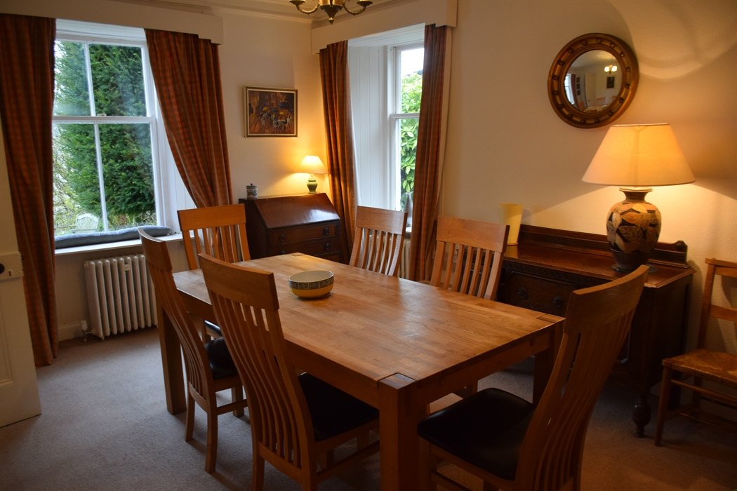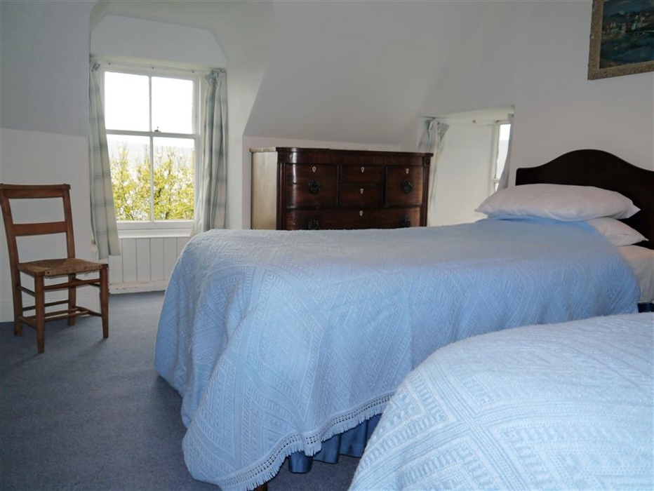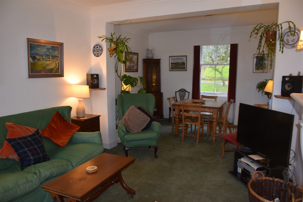 Accommodation for 8 on two floors: Ground Floor: Entrance hall; Lounge with open fire the room runs the full depth of the house; Dining room; Kitchen with oil fired Aga; Larder; Toilet with wash hand basin. First floor: 1 Twin with en-suite 'Jack & Jill' bathroom with bath, separate shower, toilet and wash basin; 2 further Twins; 1 Bedroom with 2 x 3 foot bunk beds (low headroom on top bunk); Family bathroom with bath, separate shower and wash basin; Separate wc; Cot Room.