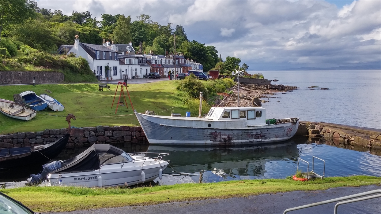 A two-bedroom, pet friendly cottage quietly located in Corrie on the Isle of Arran. Boasting stunning coastal views, a cosy interior with all home comforts including WiFi and a wood burner, and a short walk to the local hotel.