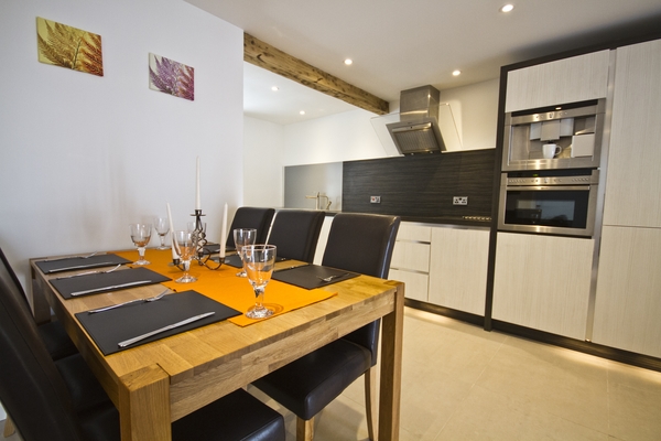 KITCHEN DINING ROOM The entrance hall leads into a large open plan kitchen dining room with a high spec modern fitted kitchen and a table sitting 6 people comfortably. The kitchen has all Neff appliances including induction hob, multifunction oven, dishwasher, fridge freezer, coffee machine and a quooker boiling water tap.