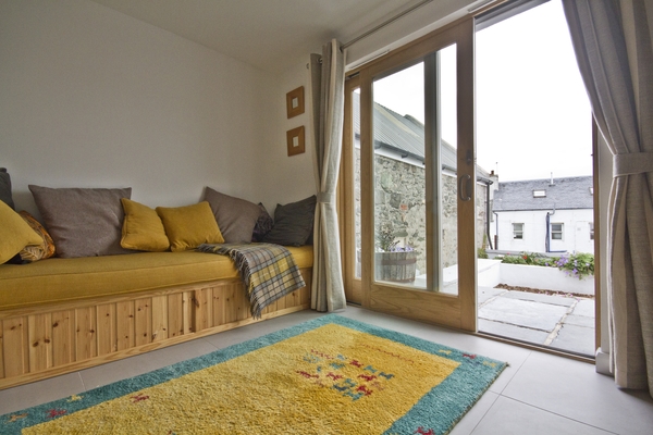 GARDEN The fully enclosed private garden catches the sun throughout the day. There are lounger chairs and a table for outdoor dining, a BBQ, outside lighting and a fire pit for keeping away the evening chill and the midges when you feel like sitting outside stargazing.