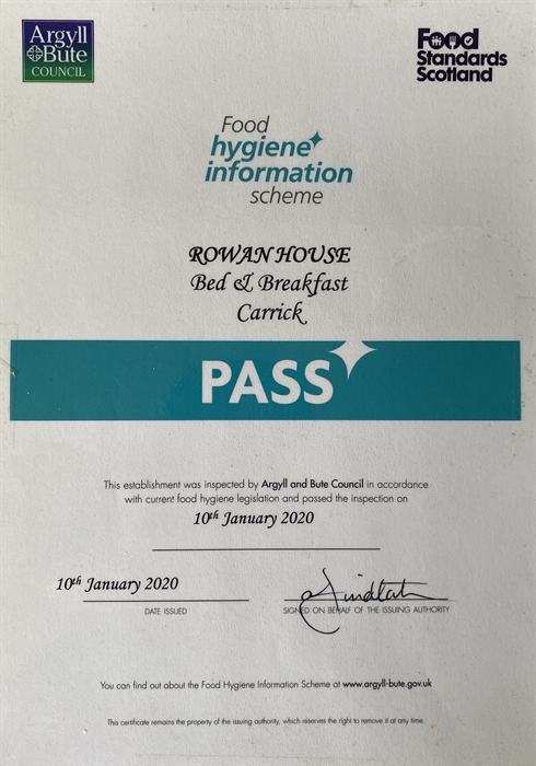 Rowan House B&B Rooms & A Self Catering Apartment is around an hour's drive from Glasgow Airport and around 60 miles from Oban, where ferries depart to the Isle of Mull, or an hour's drive to Dunoon for ferries to Greenock / Gourock and down the coastal road towards Largs.