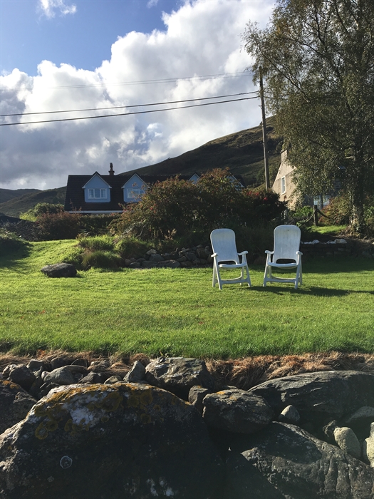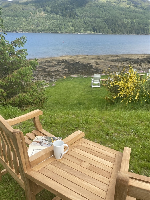 In front of Rowan House, our 'shore' garden goes straight to the beach / water's edge where there is plenty of room to sit and relax, listen to the birds and water whilst enjoying the stunning views, you may even spot the odd seal! Guests can use available seating and can bring a disposable bbq onto the pebble beach to use. This garden area is grassed and leads onto the shingle beach from which you can swim and kayak/paddleboard, as well as fish. By the side of the seating area there is a gated private slipway should you like to bring a boat; we also have our own mooring. There is also free car parking and you can store bicycles / canoes at the rear of the house.