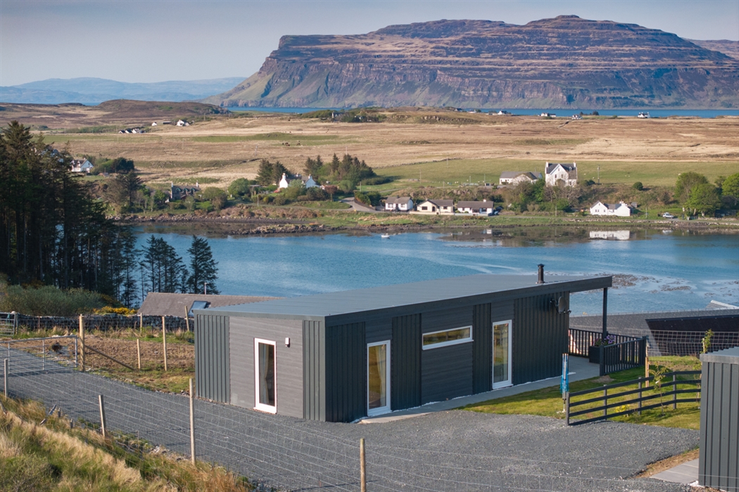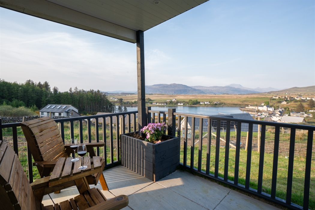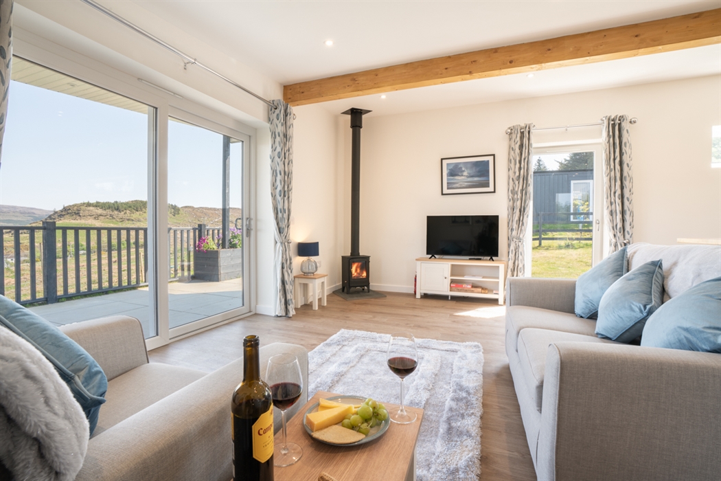 Luxury sea view lodge for two overlooking Loch na Lathaich.