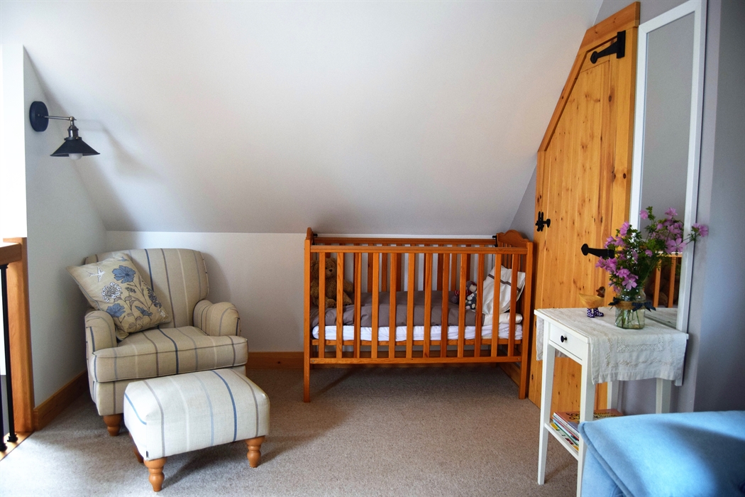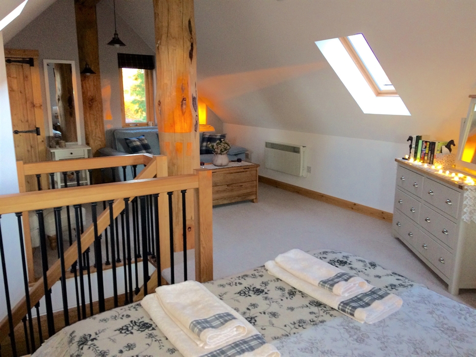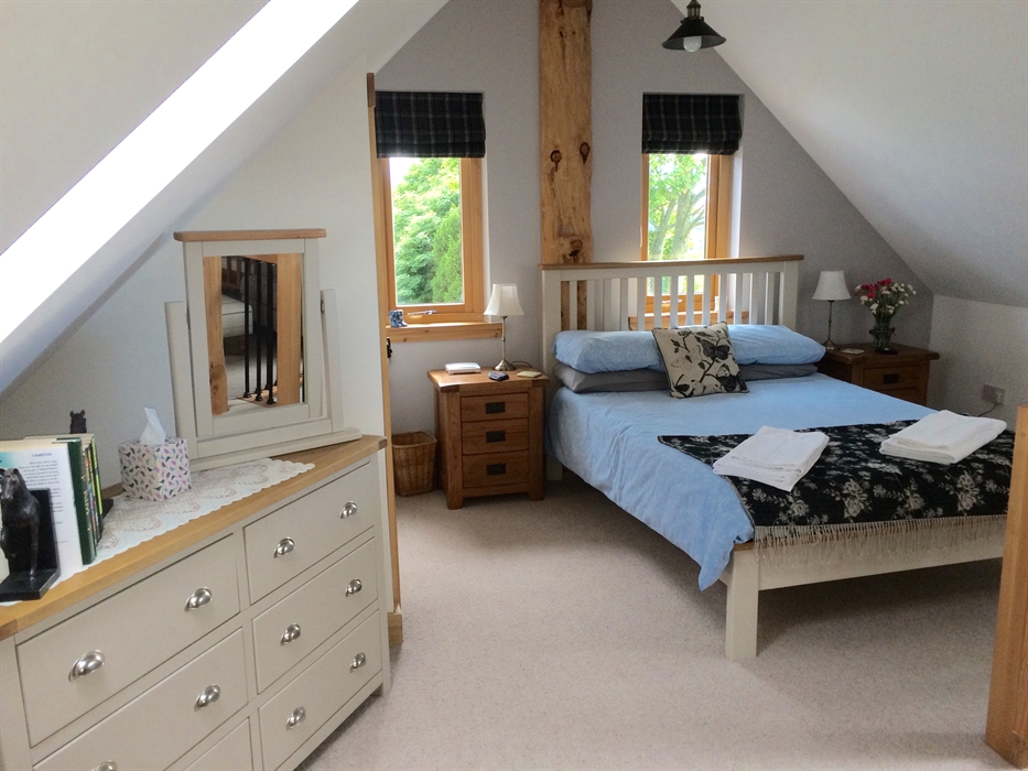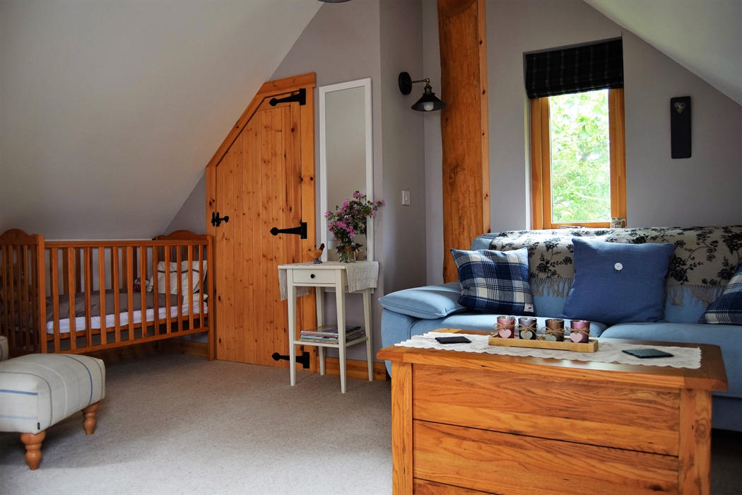 There is a double bedroom furnished in Harris tweed and a shower room on the ground floor. The upstairs double bedroom is bright spacious and has a seating area which can be used as a double sofa bed.