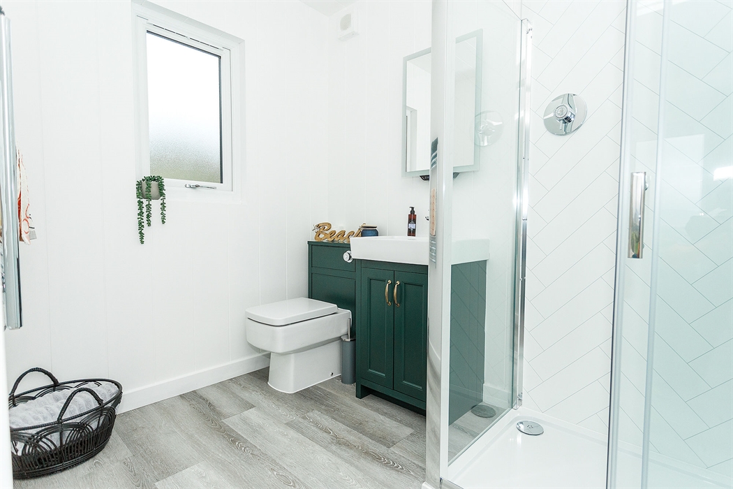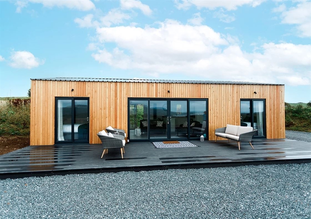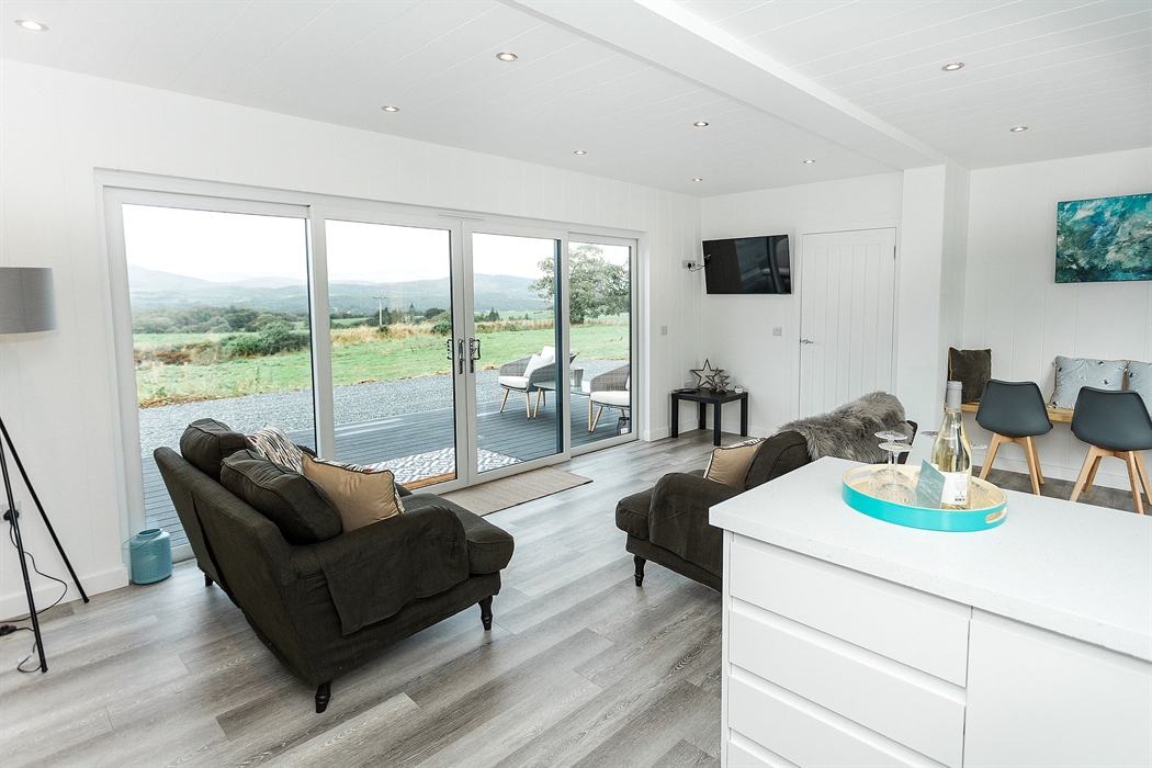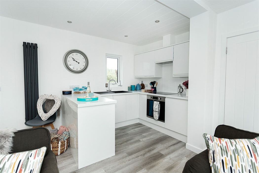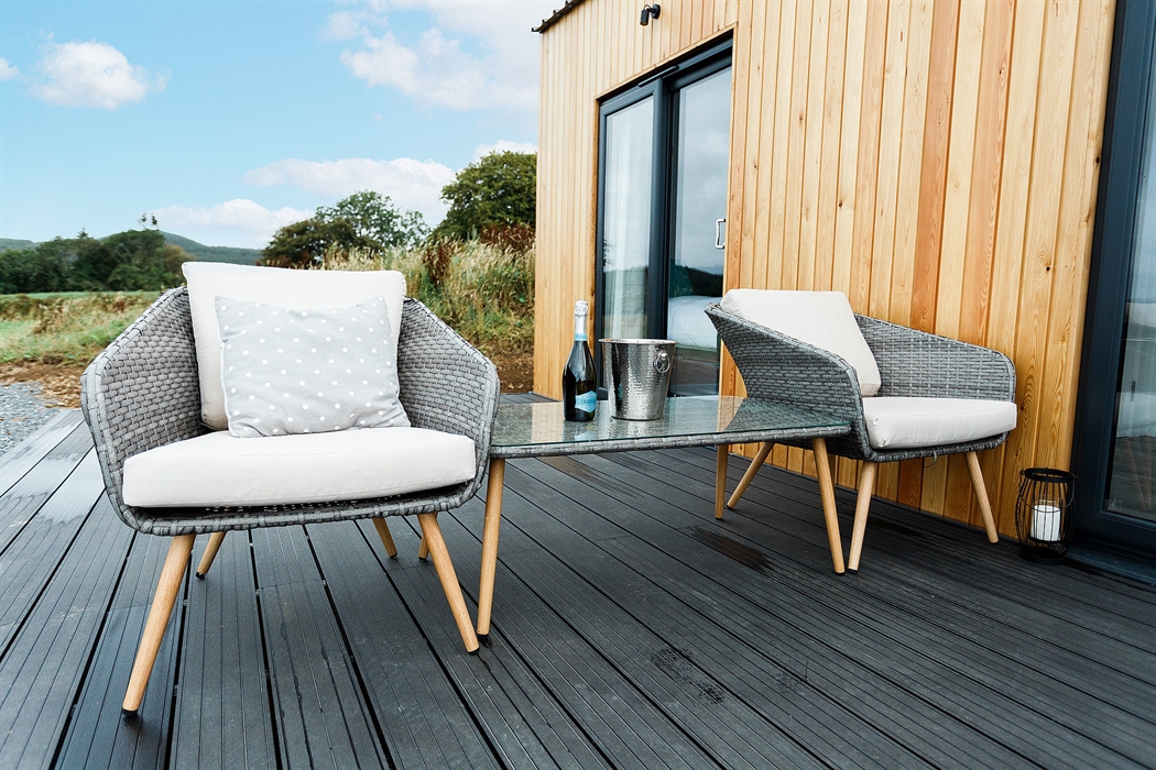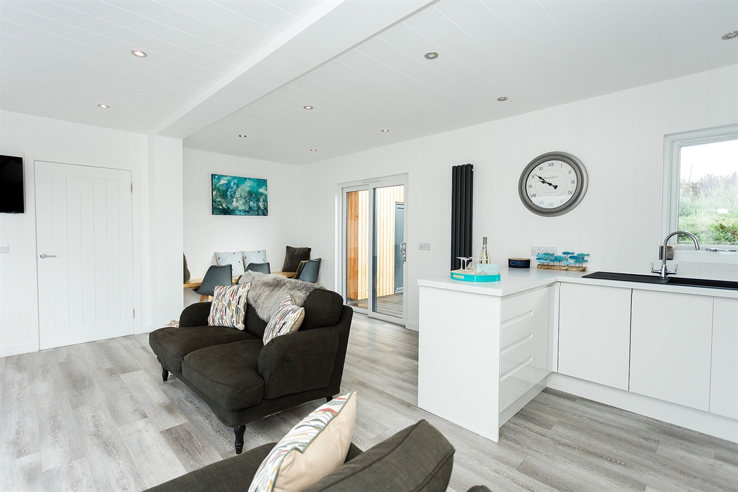 Accommodation for 4 across one floor: External decking area with seating; Open plan living, kitchen and dining area; King size bedroom with zip n’ link beds so can be a twin (please state preference when booking ) and ensuite bathroom with bath; King size bedroom and ensuite bathroom with walk in shower. Outside: Utility Room and decked area with seating