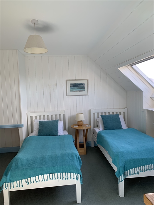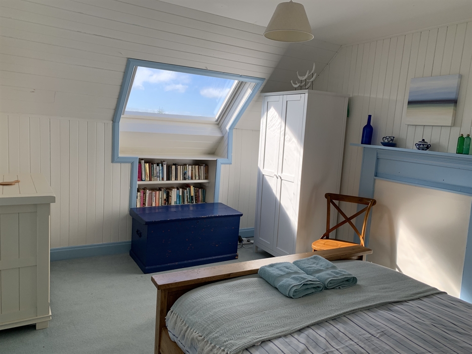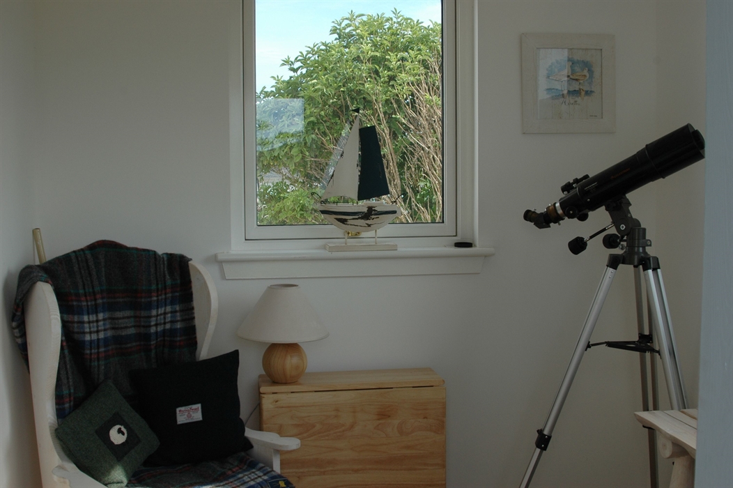 A back hallway leads to the utility room with sink, washing machine, tumble dryer and microwave and back door; newly fitted bathroom with bath, shower over, wc and wash hand basin and a small downstairs twin room with views over to Taransay.