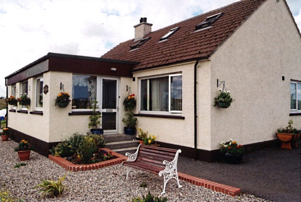 Beautiful views overlooking picturesque bay with miles of unspoilt sandy beaches & Sutherland hills in the distance.