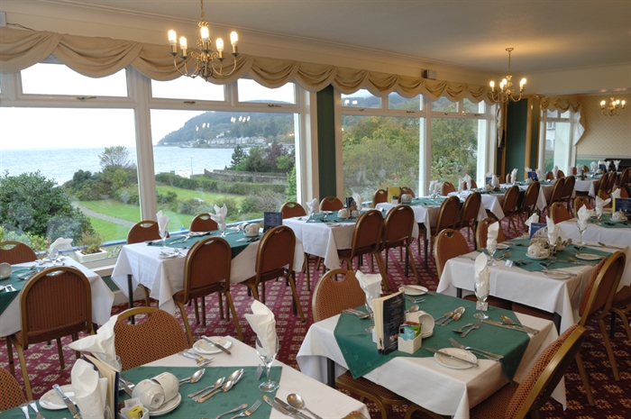 Set in its own gardens reaching down to the promenade and waters edge, all the ground floor public areas including the bar lounge, restaurant and TV lounge offer uninterrupted views of the busy River Clyde, and the Gantocks, where you will sometimes hear the seals and see them relaxing on the rocks at low water.