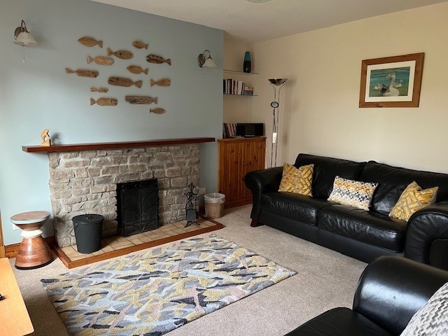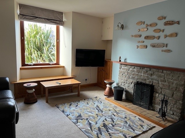 - Living Room is cosy, comfy and spacious with a smart tv and open fire.